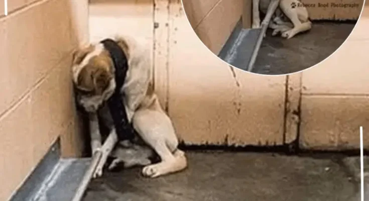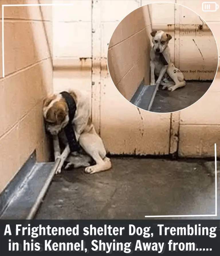 When photographer Rebecca Rood walked through the corridors of Whitfield County Animal Shelter, she expected to see many faces longing for homes.But one dog, named Stewart, immediately stood out. Huddled in the corner of his kennel, his entire body language spoke volumes. His frame trembled, his head hung low, and his desperate attempt to disappear into the wall revealed the weight of his trauma.Rebecca quickly learned that Stewart’s story was as painful as his posture suggested. He had been discovered in the woods near Dalton, Georgia, cruelly abandoned and tied to a tree.A thick leather belt had been fastened around his neck, cutting into his skin and leaving behind raw marks. Even when rescuers tried to remove the belt, Stewart recoiled in fear, growling not out of aggression but out of sheer terror. His past had stripped away his ability to trust.